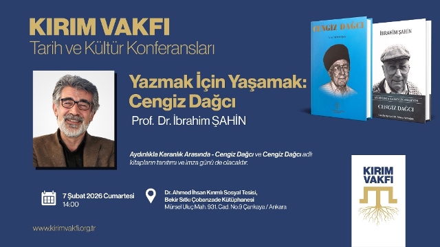 “Tarih ve Kültür Konferansları” kapsamında 7 Şubat 2026 tarihinde Prof. Dr. İbrahim Şahin ile düzenleyeceğimiz “Yazmak İçin Yaşamak: Cengiz Dağcı” adlı konferansa ve imza gününe bütün dostlarımızı davet ediyoruz.